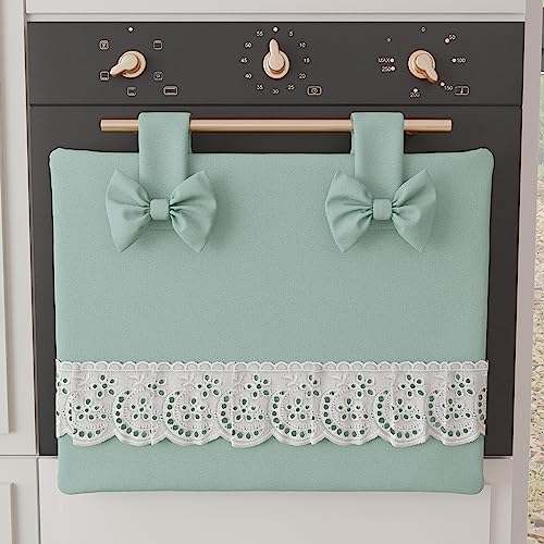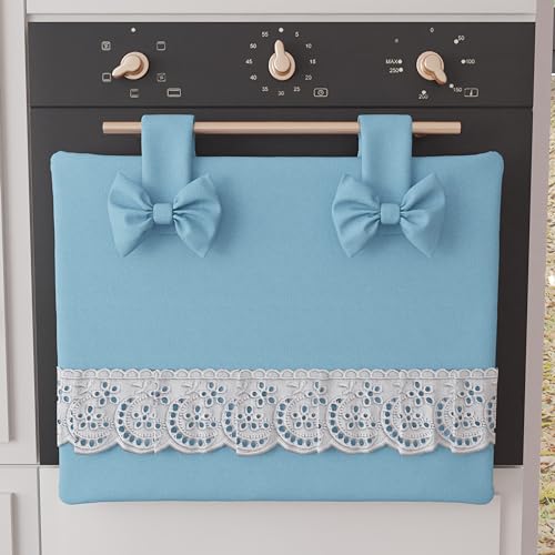 PETTI Artigiani Italiani - Ugnsöverdrag, elegant ugnsskydd Shabby Chic i enfärgad med volang i spets sjungel och rosetter, ugnsskydd i bomull, ugnsskydd 50 x 42 cm Aqua