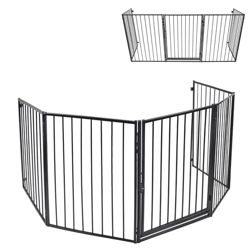 Froadp 75 x 60 cm, kaminskydd med dörr, 5 delar, valputlopp lekhage, fällbart barnskyddsgaller, 300 cm, dörrskyddsgaller i metall, ugnsskydd, barnsäkring, avstängningsgaller