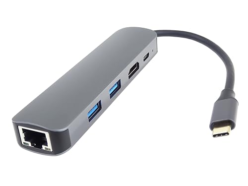 PremiumCord USB-C-docka med 4K HDMI, 2x USB 3.2, RJ45 10/100/1000mbps och 100 W PD, UHD-upplösning 4K 2160p 30Hz, Full HD 1080p, USB 3.2 typ C, Plug and Play, aluminiumfodral, 20 cm lång