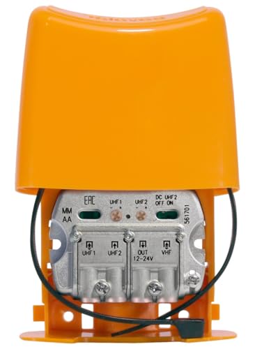 UHF/VHF mastförstärkare, lågt brus, justerbar förstärkning, förbättrar signalmottagningen för TV och radio i områden med svag mottagning.