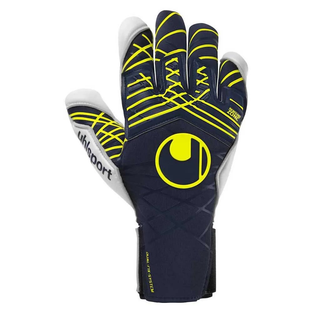 uhlsport fotbollsmålvaktshandskar Prediction Absolutgrip Skin Cut, 7, marinblå/vit/fluo gul
