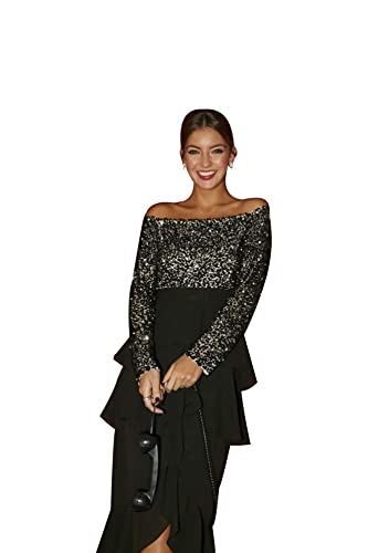 Little Mistress dam Amirah utsmyckad Bardot Frill Midi-klänning, storlek 6 UK, svart, Svart, 32 SE