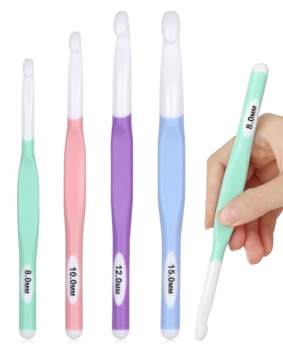 Coopay virkade krokar stora UK storlek 15 mm 12 mm 10 mm 8 mm, tjocka plastkrokar för resor, ergonomisk stor virkning krok med långt handtag för artrit hand, för tjocka garnmattor projekt