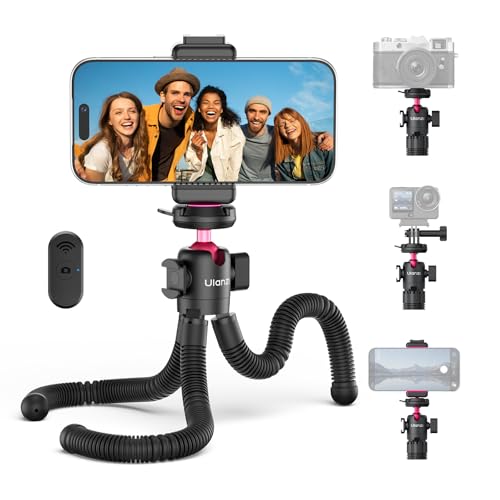ULANZI MT91 Octopus Kamerastativ med snabbutlösning, Flexibel Selfie-pinne med Bluetooth-fjärrkontroll, Actionkameraadapter, Telefonklämma; Mobiltelefonstativ Kompatibelt med iPhone och Samsung