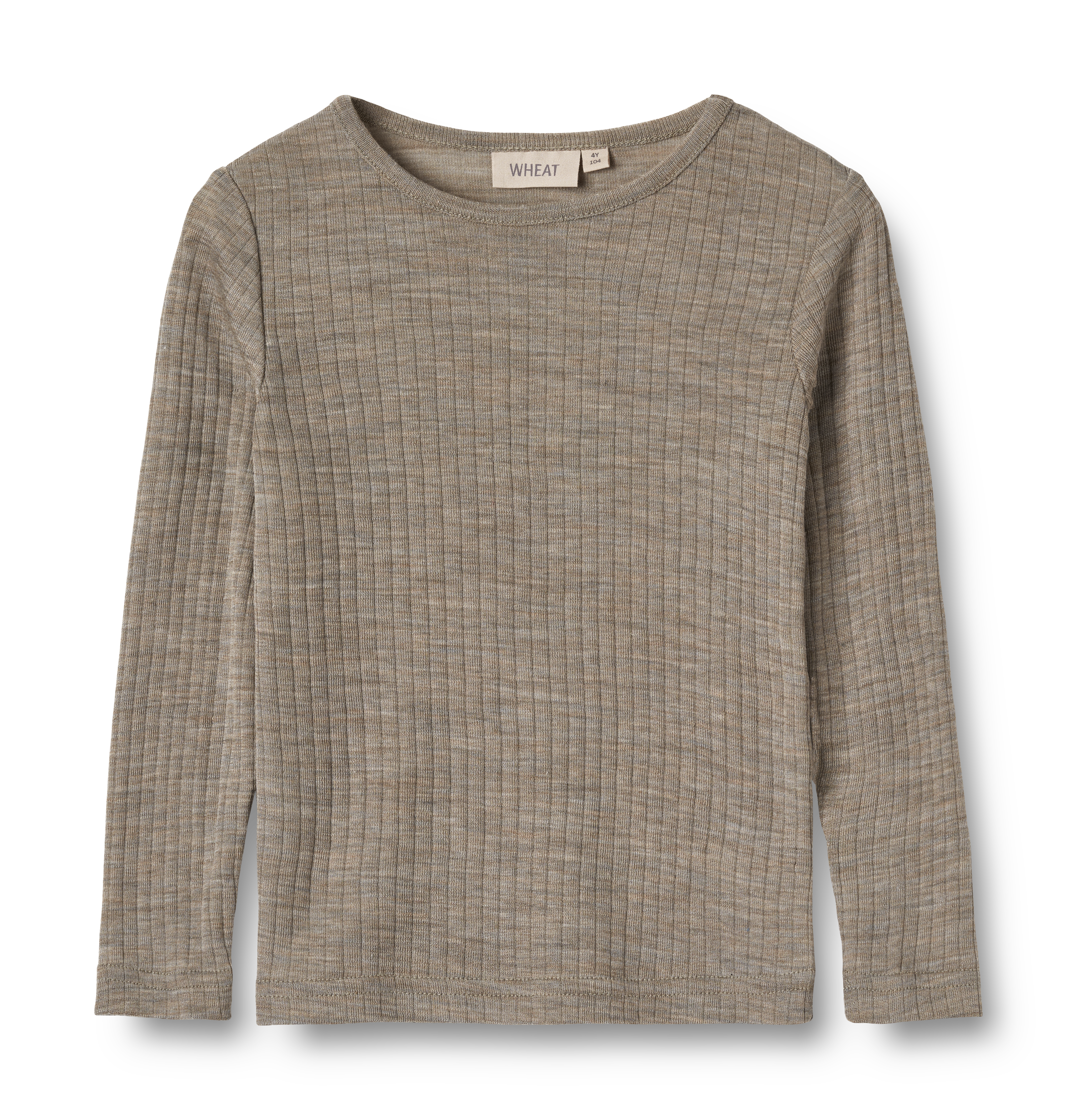 Wheat Alfie Långärmad T-shirt I Ull Och Silke Khaki Melange Khaki Melange 104 cm Wool Brun 104 cm unisex
