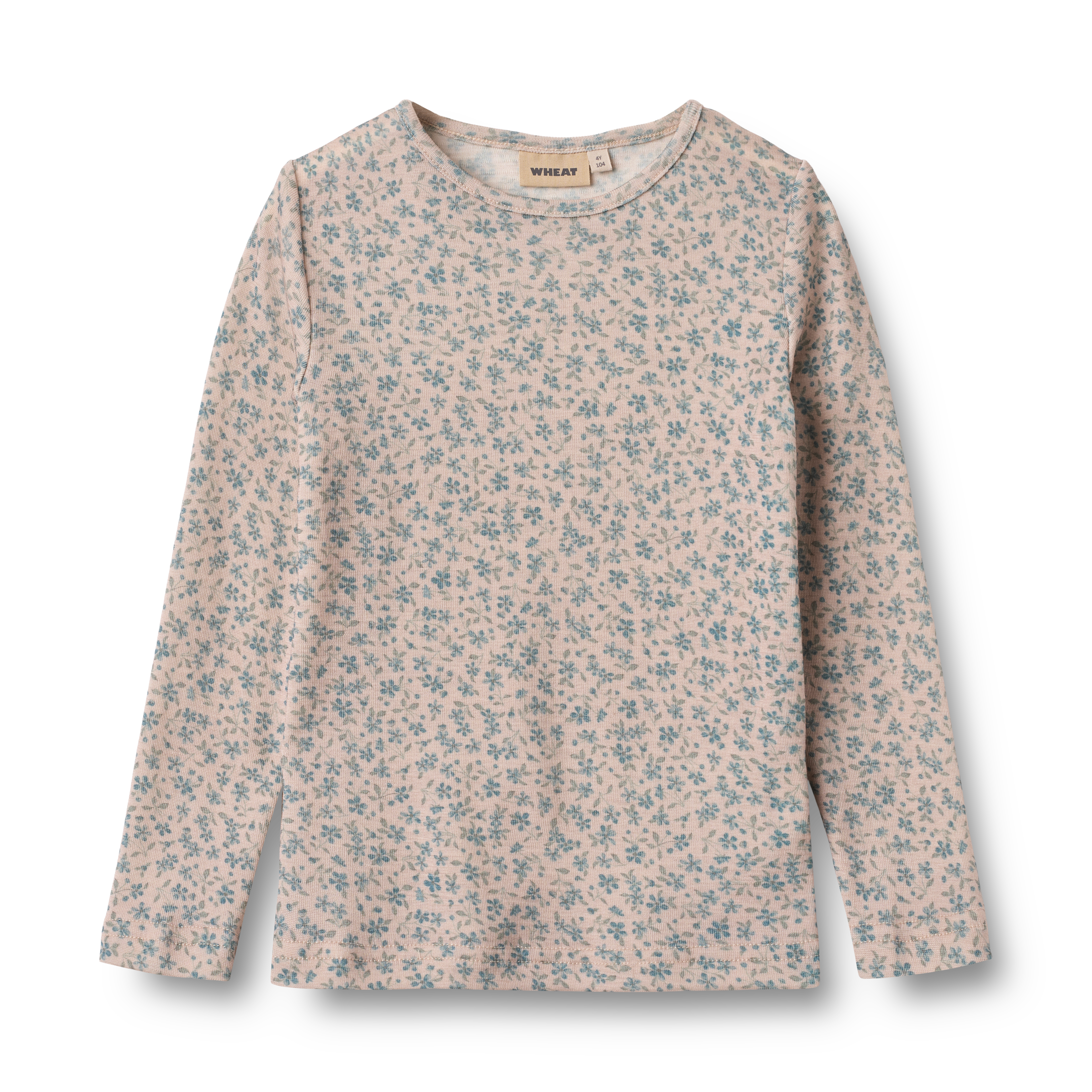 Wheat Alfie Långärmad T-shirt I Ull Blue Flowers Blue Flowers 104 cm Wool Rosa 104 cm kvinna