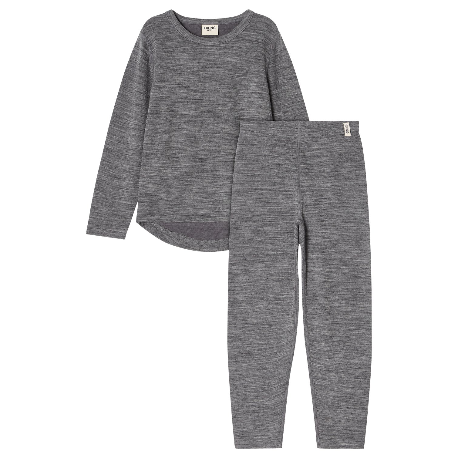 Kuling Gisborn Baselayer-set I Ull Och Bambu Dark Grey Melange 98/104 cm Wool Grå 98/104 cm unisex