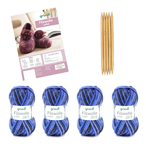 Gründl stickset filt ull färg (ull för tovning och stickning, tvättbart universalgarn tillverkat av 100% ny ull, 50 g/50 m, nåltjocklek: 8 – 9, 4 nystan á 50 g), blåantracit flerfärgad