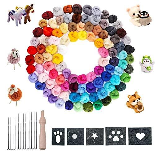 Allazone 115 stycken filtset nålfiltset, 100 färger ull roving fårull gör-det-själv filt ull sagoull med ullnål filtverktyg för gör-det-själv hantverk heminredning handspinning projekt