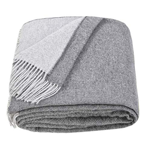 LYHome Merino ull Pläd - Filt med Fransar. Yllefilt Perfekt för Soffa, Säng, Vardagsrum, Sovrum, för Dekoration och Som Gåva. Varm, Mysig och Mjuk Pläd (140 cm x 200 cm/Grå - Ljusgrå)