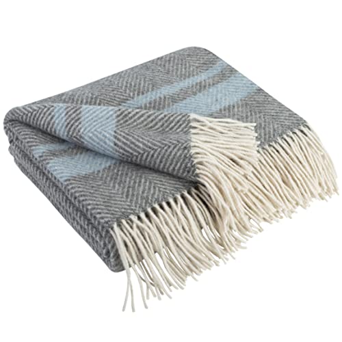 LYHome Merino ull Pläd - Filt med Fransar. Yllefilt Perfekt för Soffa, Säng, Vardagsrum, Sovrum, för Dekoration och Som Gåva. Varm, Mysig och Mjuk Pläd 140 x 200 cm/Grå - Blått - Vitt