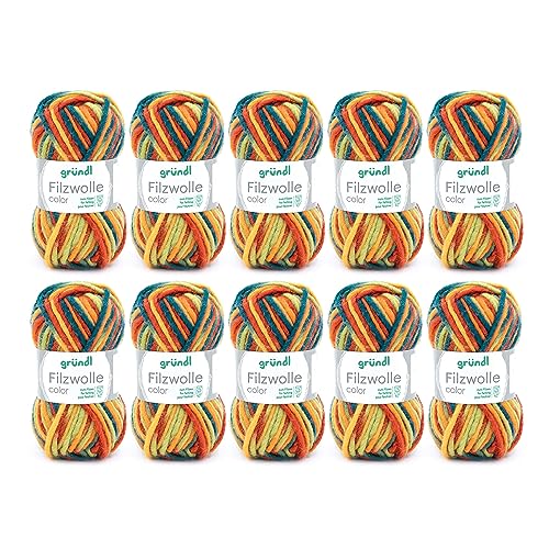 Gründl Ull filt ullfärg – tjock ull för filtning i tvättmaskinen – stickgarn för filtning – mjuk och hudvänlig – 100% ny ull – 10 nystan 50 g/50 m – nåltjocklek 8–9 – blågrön-röd
