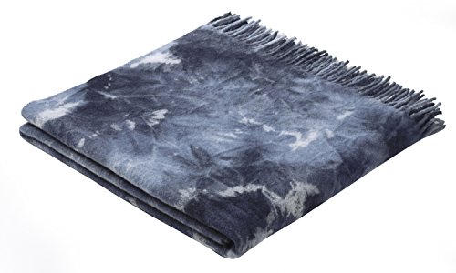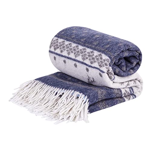 LYHome Merino ull Pläd - Filt med Fransar. Yllefilt Perfekt för Soffa, Säng, Vardagsrum, Sovrum, för Dekoration och Som Gåva. Varm, Mysig och Mjuk Pläd (140 cm x 200 cm/Marinblå med Vitt)