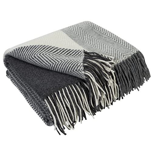 LYHome Merino ull Pläd - Filt med Fransar. Yllefilt Perfekt för Soffa, Säng, Vardagsrum, Sovrum, för Dekoration, Som Gåva. Varm, Mysig och Mjuk Pläd (140 x 200 cm/Mörkgrått - Grått - Vitt)