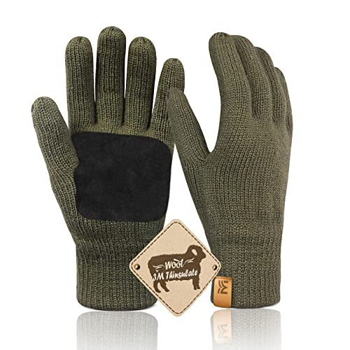 Migliore Wear vinterhandskar för män kvinnor, tjocka termiska handskar, ullhandskar med halkfri handflata, varma stickade handskar elastisk manschett för vinter utomhus, körning löpning cykling, gRÖN