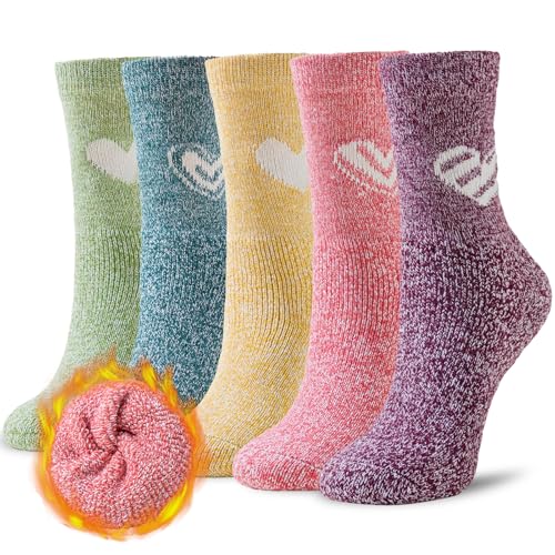 Hocerlu Termostrumpor dam, tjocka varma gosiga strumpor dam 5 par vinterstrumpor ullstrumpor färgglada mjuka vandringsstrumpor presenter strumpor för kvinnor, EU-storlek 35–42,