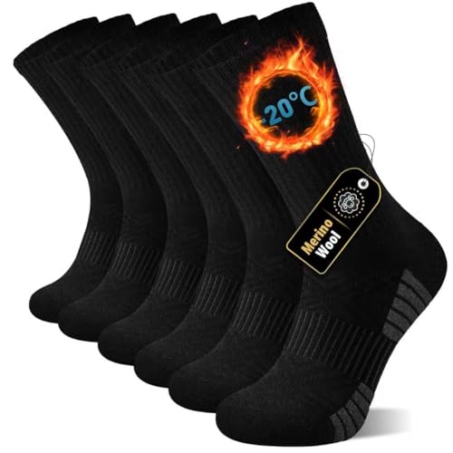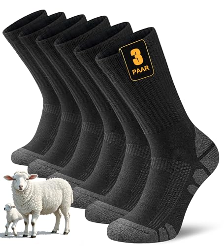 FORVEVO 60 % merino vandringsstrumpor herr dam 3 par, ullstrumpor herr vadderade, termiska vinterstrumpor, sportstrumpor för vandring utomhus, svart, 43-46 EU