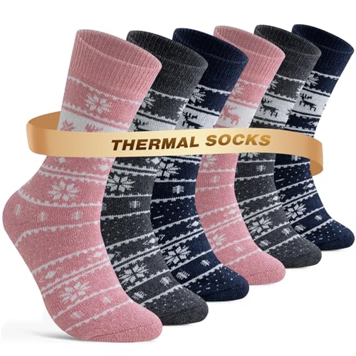 Niorasen Termiska Damstrumpor 6 Par, Varm Ullstrumpor för Kvinnor, Vinterstrumpor för Kvinnor 35-38 39-42