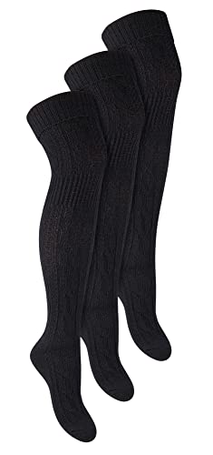 Steven 3 par multipack dam över knäet ullstrumpor dam extra långa lårhöga ullstrumpor, Svart, 36-38 EU