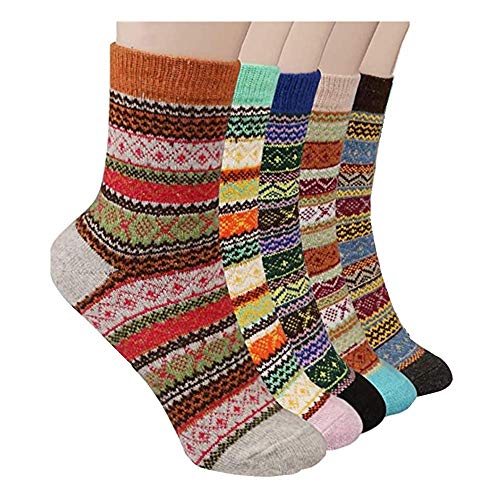 Justay 5 par ullstrumpor för kvinnor, färgglada termostrumpor, mönstrade och stickade