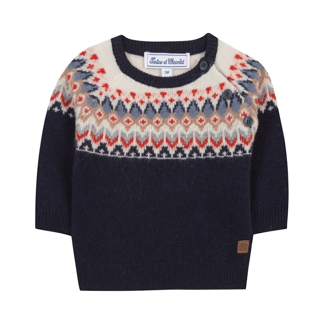 Tartine et Chocolat Ulltröja Navy 6 months Wool Marinblå 6 månader man