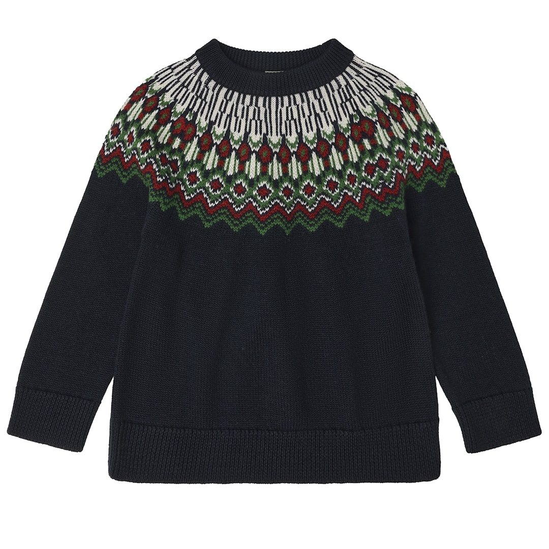 FUB Fair Isle Ulltröja Dark Navy Dark Navy-100 cm Wool Marinblå 100 cm unisex