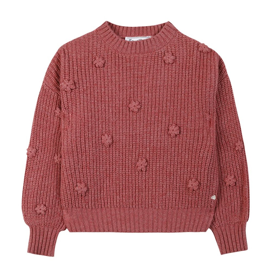 Tartine et Chocolat Ulltröja med Pom-Pom Blommor 5 Y Rosa 5 år kvinna
