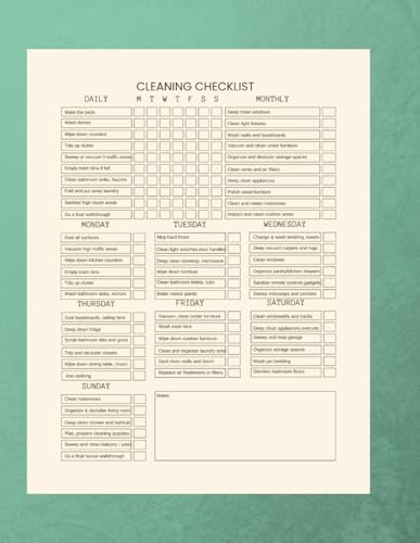 Ultimate Home Cleaning Checklist: Plan and Track Daily, Weekly & Monthly Tasks | Cleaning Chart to Organize Chores and Maintain a Clean, Tidy Home | 8.5”x11” with 122 Pages