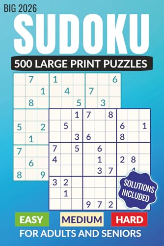 Big 2026 Sudoku - 500 Large Print Puzzle Book for Adults & Seniors. Easy, Medium and Hard Levels with Solutions.: The Ultimate Sudoku Book. Clean Layout - 2 Puzzles Per Page