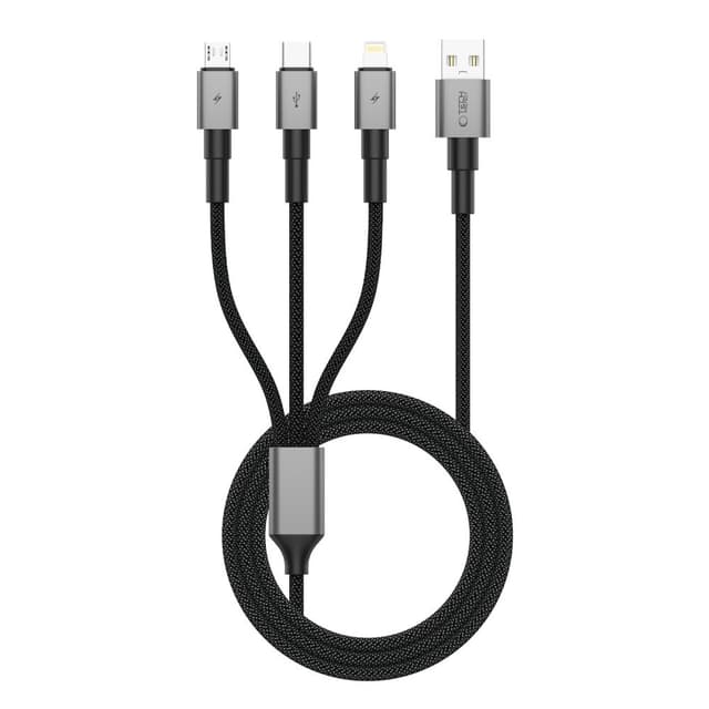 Tech-Protect UltraBoost DNA 3-i-1 laddkabel USB-C/Lightning/Micro-USB 1.2m 3A - Iron Grey