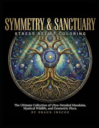 Symmetry & Sanctuary: Stress Relief Coloring: The Ultimate Collection of Ultra-Detailed Mandalas, Mystical Wildlife, and Geometric Flora.