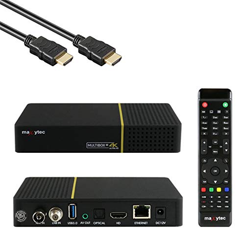 Maxytec Multibox SE 4K UHD 2160p E2 Linux WiFi DVB-S2/C Combo Receiver svart (✓ WLAN ✓ HDMI 2.0 ✓ USB 2.0 och USB 3.0 ✓ 100 Mbit LAN ✓ S/PDIF ✓ MicroSD)