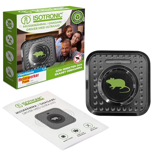 ISOTRONIC musavvisare/råttavvisare med ultraljud, testvinnare elektronisk skadedjursavvisare för hus, källare, trädgård, avvisar möss och råttor utan kemikalier och musfälla (1) (1)
