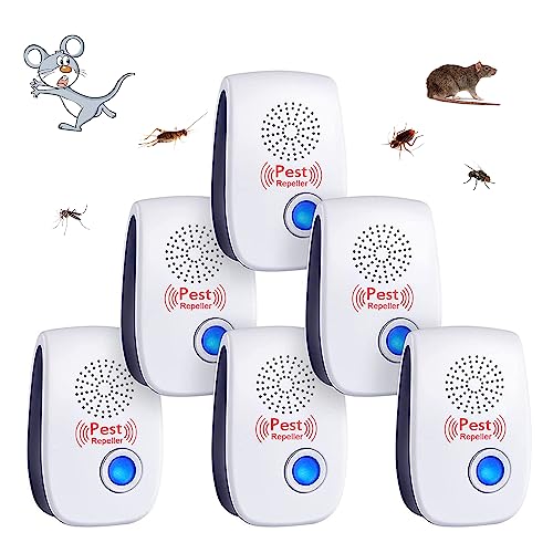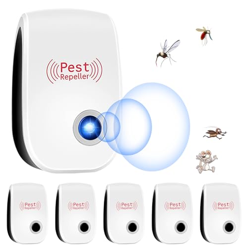 Flintronic 6 st ultraljud inomhus skadedjursbekämpningsmedel, insektsmedel för kackerlackor, myggor, möss, lämplig för rum, inomhus, utomhus