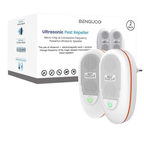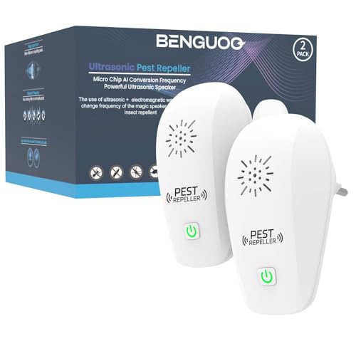 BENGUOO Ultraljudsavvisande mus, 2 stycken ultraljud musavvisare effektiv mot möss och råttor, ultraljud musförsvar giftfri, insektsskydd råttavvisare skadedjursbekämpning inomhus för Hem Kontor, Vit