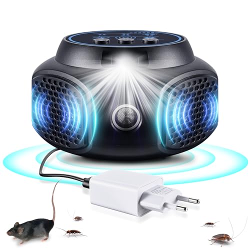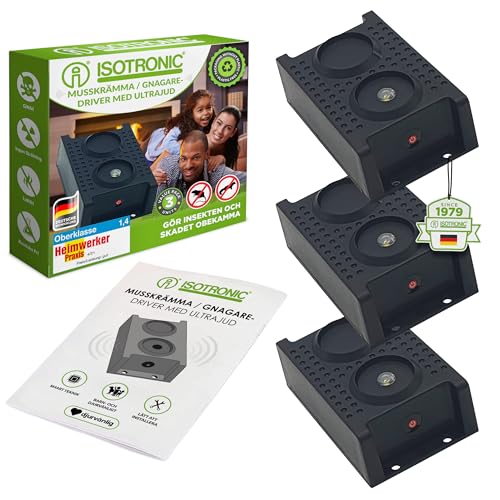 ISOTRONIC musskrämma/råttskrämma med ultraljud, skadedjursbekämpare elektronisk för hus, källare, trädgårdar, skräm bort möss och råttor utan kemikalier och musfällor