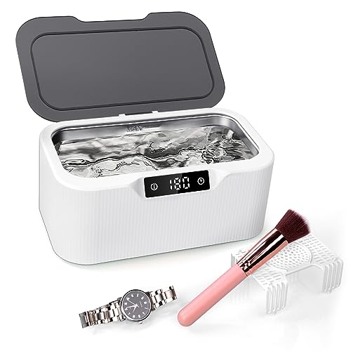 Jinlaili Ultraljudsrengöring, 47 KHz högfrekvent professionell ultraljudsmaskin, 350 ml bärbar ultraljudsrengöring och vårdenhet, för glasögon, smycken, klockor, mynt (vit)