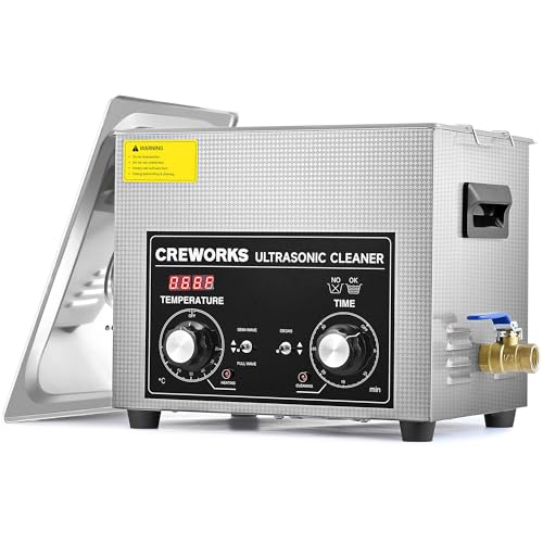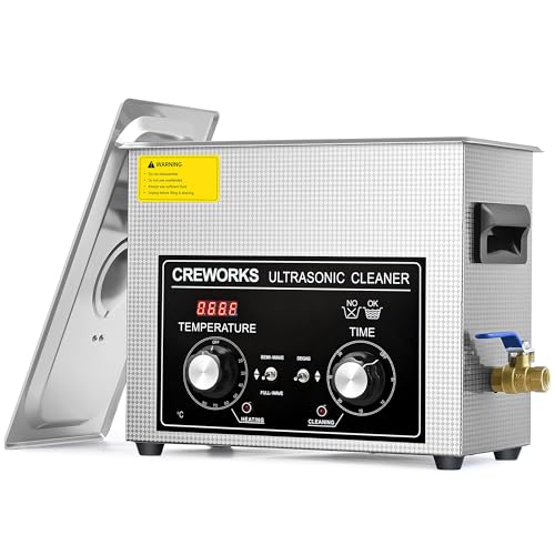 CREWORKS Ultraljudsrengörare av rostfritt stål, 6,5 liter, ultraljudsrengöring med värme och timer, för tandproteser, smycken, glasögon, klockor och glas, med knappar