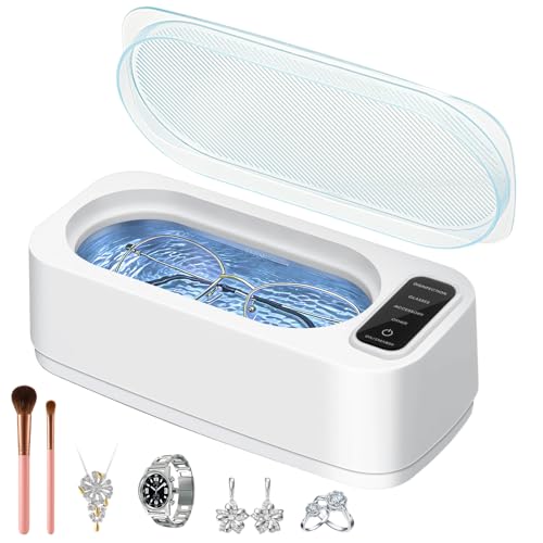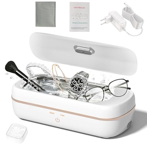 Tiardey Bärbar uppladdningsbar ultraljudsrengöring med UV-groningsfunktion för rengöring av smycken, glasögon, klockor, rakhuvuden, ringar, örhängen och halsband