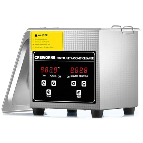 CREWORKS Ultraljudsrengörare av rostfritt stål, 3,2 liter, ultraljudsrengöring med värme och timer, för tandproteser, smycken, glasögon, klockor och glas, med knappar