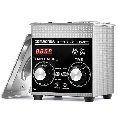 CREWORKS Ultraljudsrengörare av rostfritt stål, 1,3 liter, ultraljudsrengöring med värme och timer, för tandproteser, smycken, glasögon, klockor och glas, med knappar