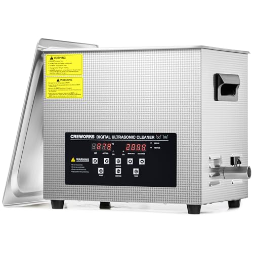 CREWORKS Ultraljudsrengörare av rostfritt stål, 10 liter, ultraljudsrengöring med värme och timer, för tandproteser, smycken, glasögon, klockor och glas, med knappar