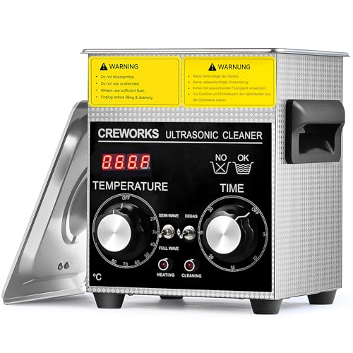 CREWORKS Ultraljudsrengörare av rostfritt stål, 2 liter, ultraljudsrengöring på 60 W med värme och timer, för tandproteser, smycken, glasögon, klockor och glas, med knappar