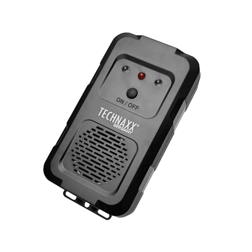 Technaxx Ultraljudsskrämma mot mård och gnagare TX-368 med LED-blixt, 12–24 kHz frekvens, 20 m² räckvidd, batteri eller 12V-ström, skadedjursavvisare för bil, vind, carport och förråd