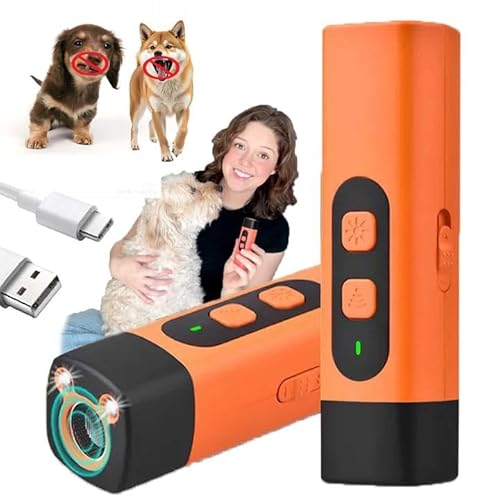 Aomig Anti Barking Device, 4 Modes Ultrasonic Dog Repeller, Dual Modes Anti Barking Device för hundar med LED-skärm och ficklampa, Uppladdningsbar Bark Stopper Husdjur