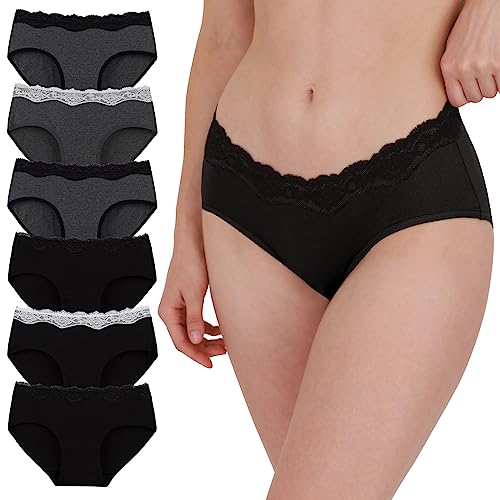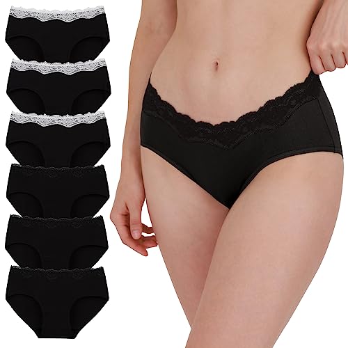 Evolyline Underbyxor, dam, spets, underkläder, kvinnor, kalsonger, hipster med spetsar, damtrosor, flerpack, mjuka underkläder, damtrosor, 6-pack, Svart 6-pack, S