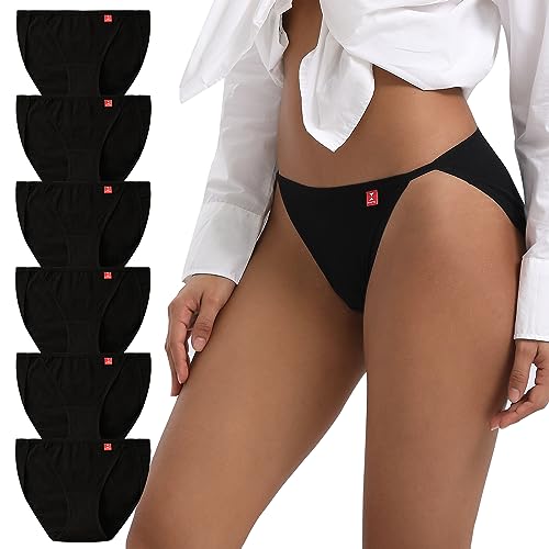 INNERSY Underbyxor dam bomull kontrastfärg trosor flerpack bekväma damunderkläder 6-pack, 6 svart, S