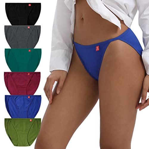 INNERSY Underbyxor dam bomull kontrastfärg trosor flerpack bekväma damunderkläder 6-pack, Förvår, M