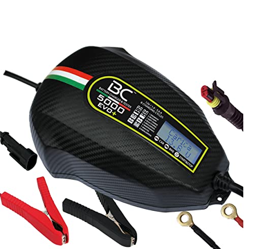BC Batteristyrenhet BC 5000 EVO+, digital batteriladdare och underhållsladdare med LCD, batteri- och laddningssystem testare för alla 12 V blysyra, bilbatterier och motorcykelbatterier, 5A/1A