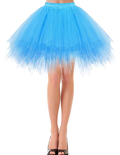 Bbonlinedress Tutu tyllkjol underkjol kjol 50-talet vintage balettbubbla danskjol dansklänning balklänning kort retro, blå, XL